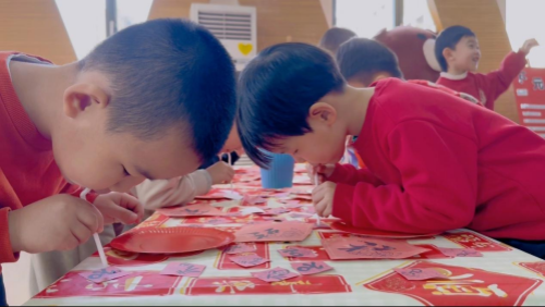 劳作室里传来香甜的气息,小朋友们正在制作香甜的汤圆。与那些热闹不同,观影区里一片静悄悄,孩子们专注地倾听老师的绘本剧表演《饺子与汤圆》,最后我们打开教室的大门,一抬眼便能看见一串串栩栩如生的花灯,映在孩子们稚嫩的脸庞,小朋友利用丰富的材料亲手制作出属于自己的花灯,傍晚归家,将花灯点亮,每个小朋友都在和爸爸妈妈讲述着自己在新世纪幼儿园平凡而又快乐的一天。