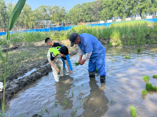 恰逢插秧时节,孩子们模仿着研学老师,弯腰将秧苗植入土壤之中,尽管泥浆飞溅脸庞,他们依旧全神贯注于营造一片整齐的绿色田野。通过实践活动,“谁知盘中餐”的意义不再停留在文字层面,而是转化为手中秧苗的触感、额头上汗水的印记,以及对“粒粒皆辛苦”的深刻理解与共鸣。